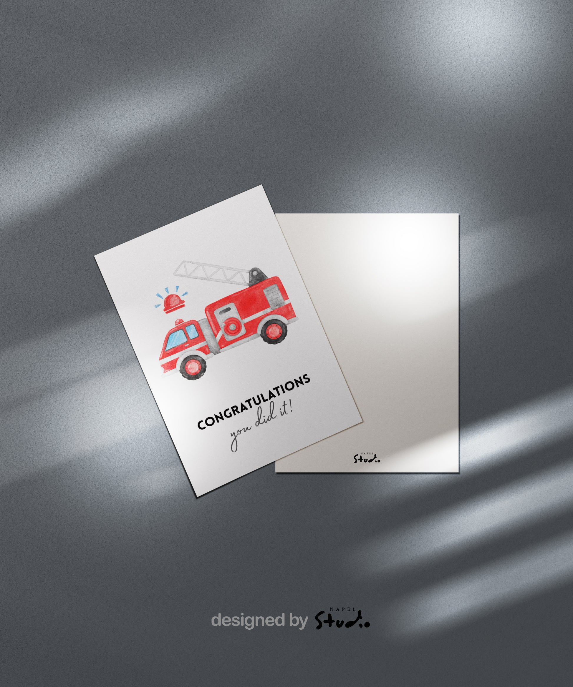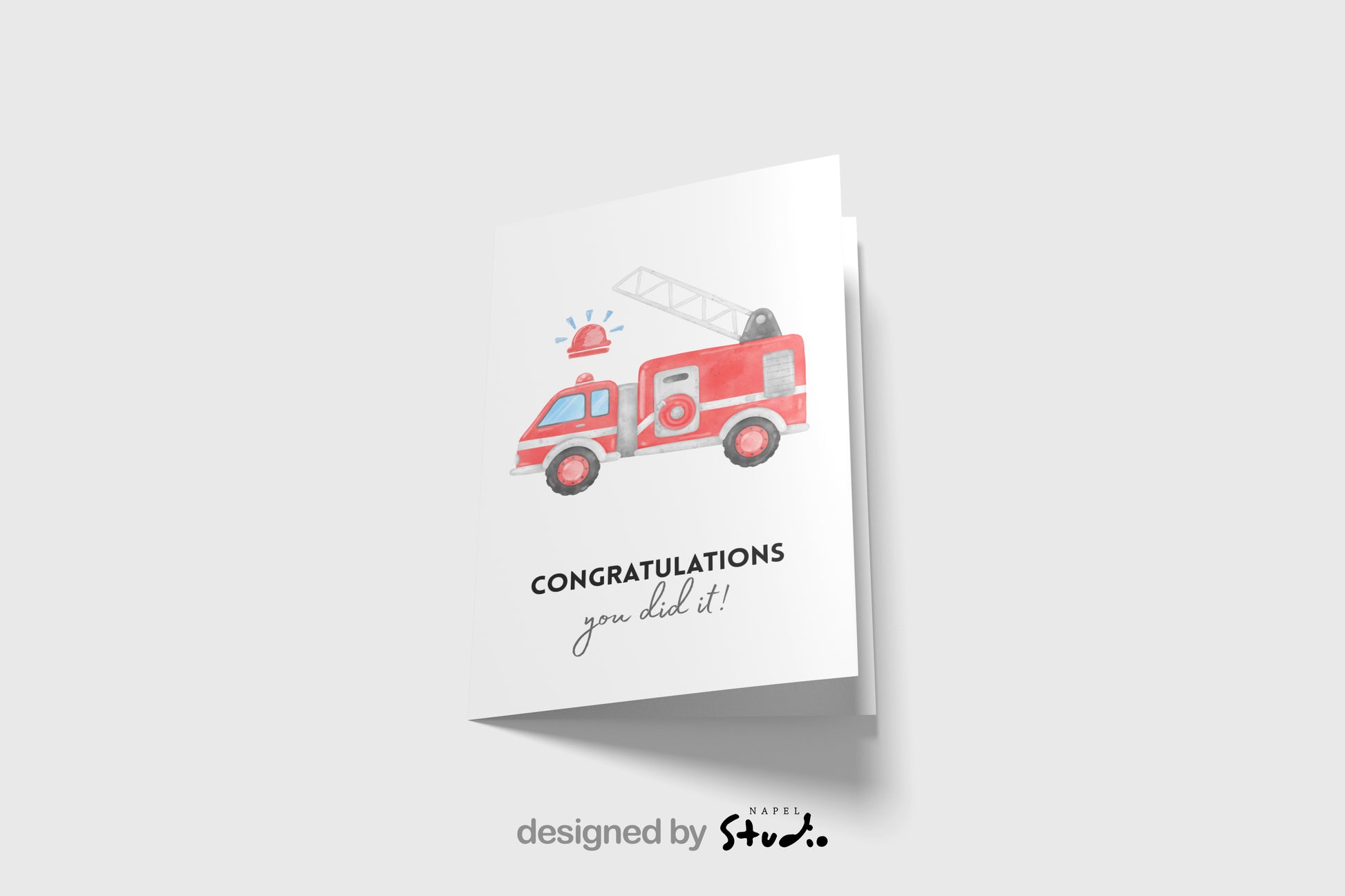 • Motiv: rotes Feuerwehrauto mit Schriftzug „Congratulations you did it!“