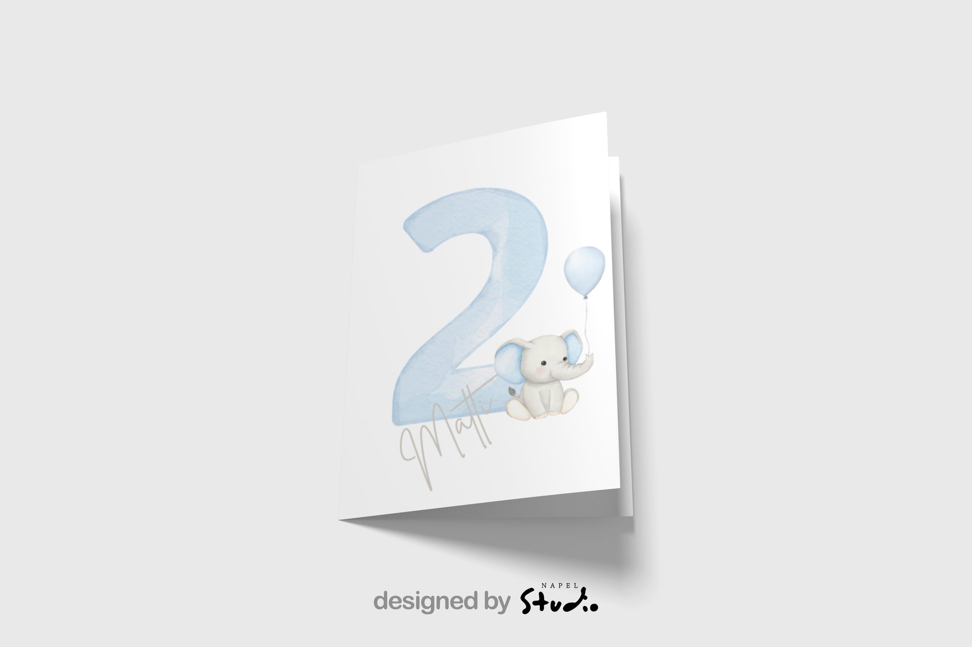 Geburtstagskarte Junge | Personalisiert mit Name | Elefant mit Ballon | Kinderkarte zum ersten Geburtstag Baby Boy